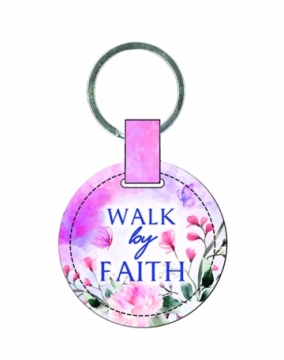 Lux-Leather Keychain (Round) - Walk By Faith