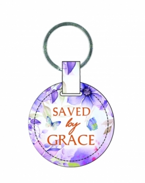 Lux-Leather Keychain (Round) - Saved by grace