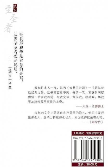 《智慧的开端:认识至圣者》是陶恕的巅峰之作,也是教会历史上的经典作品。于1961年正式出版,截止2009年,已经连续再版数次,销售50万册。