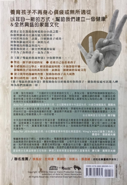 《親子雙贏的教養智慧》將幫助你有目的地養育你的孩子,使你的家庭可以進入神所為你們預備的一切。