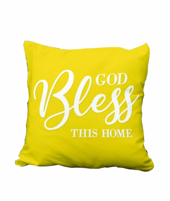 3D Embroidered Pillow Case - God Bless This House (Yellow colour case)