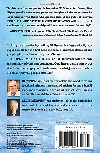 Picking up where bestselling 90 Minutes in Heaven left off, Don Piper reveals for the first time the sacred, intimate details of the people who met him at the gates of heaven and the profound impact they had on his faith on earth.