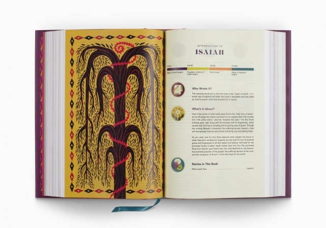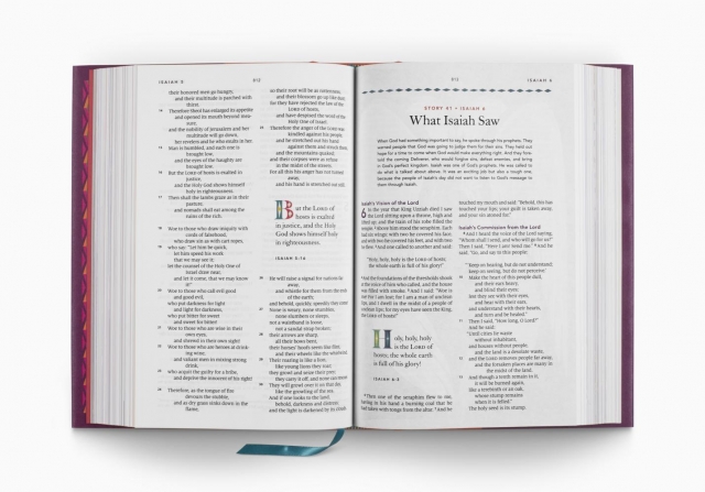 Each book of the Bible opens with a colorful 3-page introduction that includes a summary, timeline, information about the author, character profiles, and more. There are 104 key Bible stories highlighted in the Bible text. At the end of every highlighted Bible story, “Digging Deeper” sections recap the passage and prompt kids to “Learn, Reflect, Discover, and Pray” about what they’ve just read. Sidebars throughout teach kids to apply God’s truth, learn important facts, and see Jesus in all of Scripture.