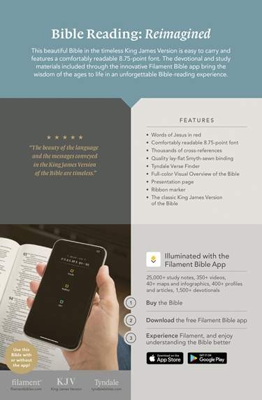 The Filament Bible app turns this Bible into a powerful study and devotional experience, offering more to expand your mind and touch your heart than you can possibly hold in your hand.