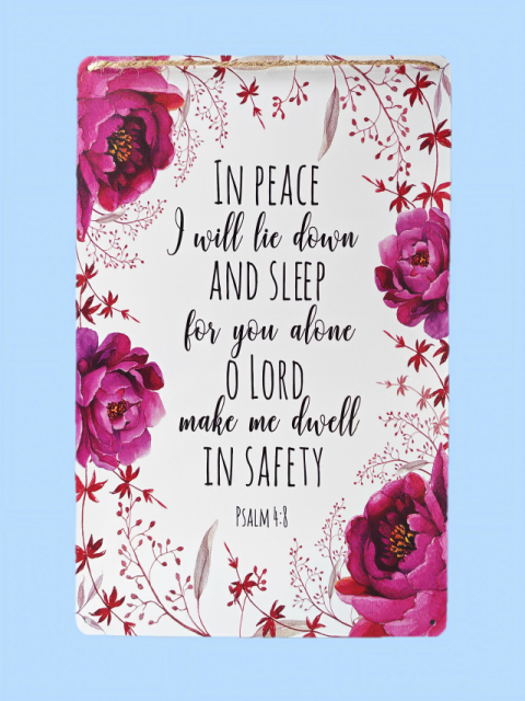 Metal Tin Sign - Aluminum Wall Hanger 20x30cm With Bible Verse : In Peace I will Lie Down and Sleep (Psalm 4:8)