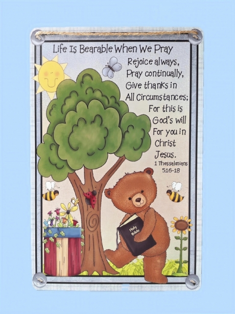 Metal Tin Sign - Aluminum Wall Hanger 20x30cm With Bible Verse : Life Is Bearable When We Pray (1 Thessalonians 5:16-18))