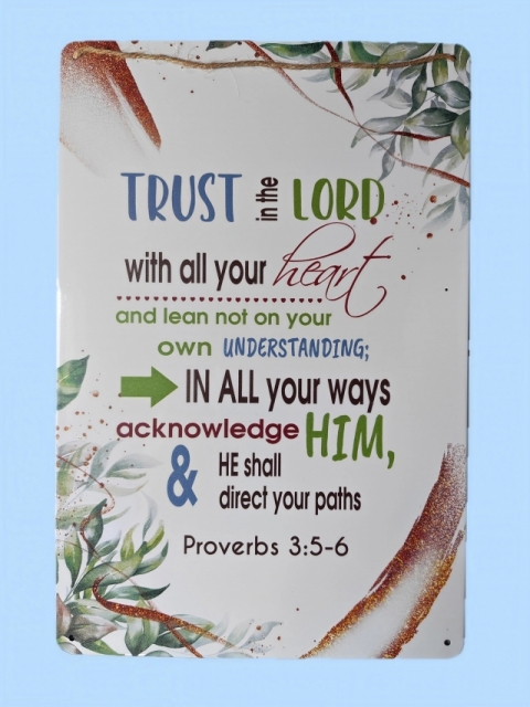 Metal Tin Sign - Aluminum Wall Hanger 20x30cm With Bible Verse : Trust in the LORD with all your heart (Proverbs 3:5-6)