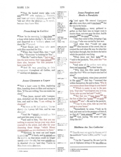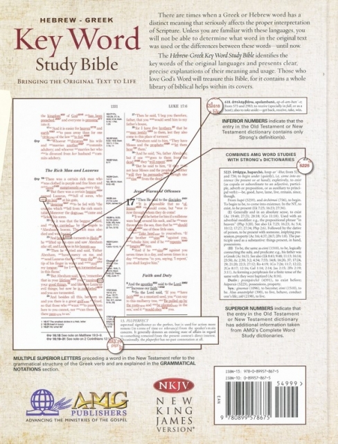 The Hebrew-Greek Key Word Study Bible is a complete English Bible text for cross-reference study to the original languages from which the Bible was translated.