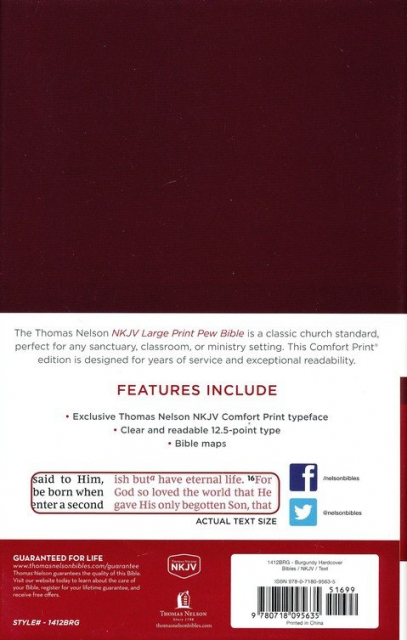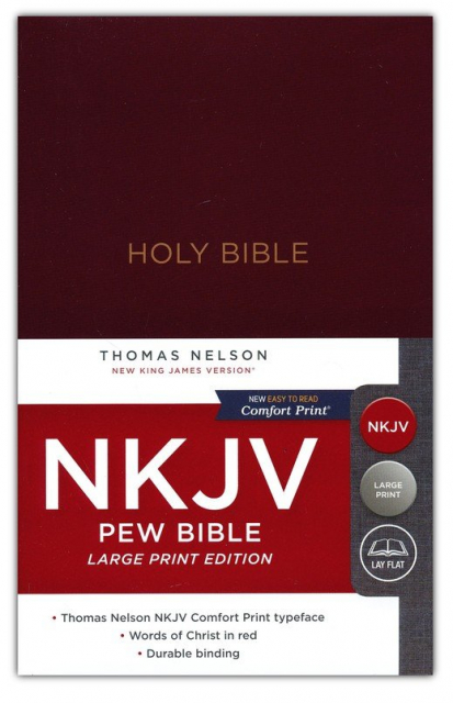 The New King James Bible is one of the best-selling and most-trusted modern English translations. Millions of readers around the world enjoy the beauty of the NKJV, the ease of reading the Bible in today’s English, and the accuracy of the translation. The Thomas Nelson NKJV Large Print Pew Bible is a trusted and durable Bible with an easy-to-read 12-point text size, making it an excellent choice for use in churches and a variety of worship settings.
