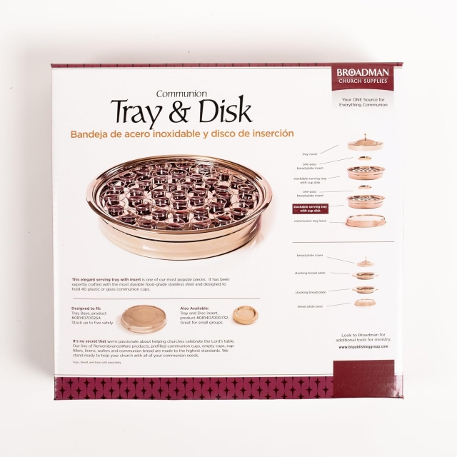 RemembranceWare: Communion Tray & Disk - Silver Finish: Stainless Steel / Holds Up to 40 Plastic or Glass Cups / Stack Up to Five Trays Together