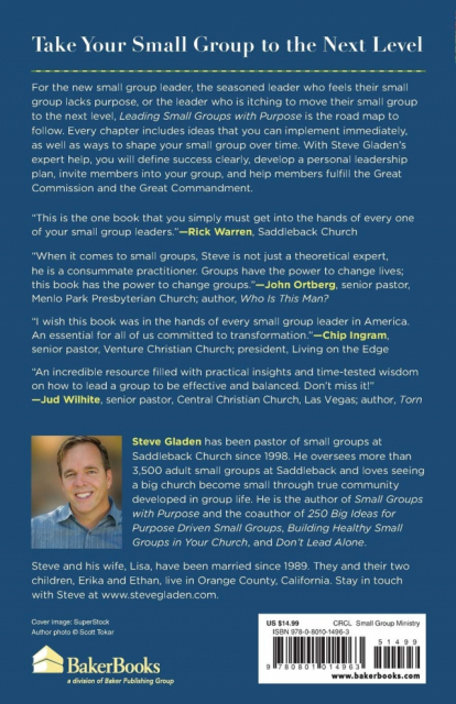 For the new small group leader, the seasoned leader who feels their small group lacks purpose, or the leader who is working to move their small group to the next level, Leading Small Groups with Purpose is the road map to follow. Steve Gladen takes small group leaders step-by-step toward a healthy, dynamic group with focus and purpose. Every chapter includes ideas that small group leaders can implement immediately as well as ways to shape their small groups over time. Includes a foreword by John Ortberg and a free small group assessment tool ($12.50 value).