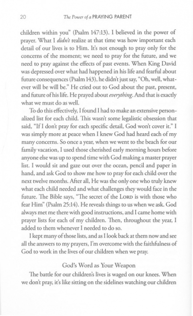 Stormie Omartian’s bestselling The Power of a Praying® series (more than 28 million copies sold) is rereleased with fresh new covers and new material to reach a still-growing market of readers eager to discover the power of prayer for their lives. After 20 years of raising her son and daughter alongside her husband, Michael, Stormie looks back at the trials and joys of parenting and the power in praying for her children. In these easy-to-read chapters, Stormie shares from personal experience as to how parents can pray for their kids’ safety character development adolescence peer pressure school experiences friends relationship with God This resource will help you to be an amazing praying parent whether your kids are three or thirty-three. Stormie Omartian’s bestselling The Power of a Praying® series (more than 28 million copies sold) is rereleased with fresh new covers and new material to reach a still-growing market of readers eager to discover the power of prayer for their lives. After 20 years of raising her son and daughter alongside her husband, Michael, Stormie looks back at the trials and joys of parenting and the power in praying for her children. In these easy-to-read chapters, Stormie shares from personal experience as to how parents can pray for their kids’ safety character development adolescence peer pressure school experiences friends relationship with God This resource will help you to be an amazing praying parent whether your kids are three or thirty-three.