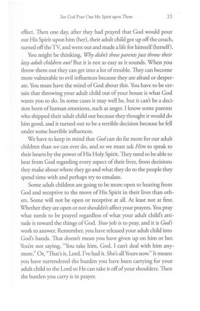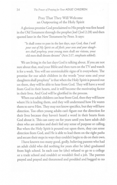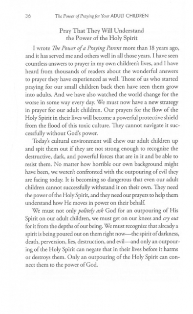 In this important follow-up to The Power of a Praying® Parent (2 million copies sold), Stormie addresses areas of concern you may have for your grown children and shares how to lift them up to God. With stories from other parents and insight gleaned from personal experience, Stormie helps you pray with the power of God’s Word over your adult children and their career choices and sense of purpose marriages and other vital relationships parenting skills and leadership struggles, addictions, or emotional trials faith commitment and prayer life Perhaps you are watching your grown children step out into the world and wishing you could do more to support them while giving them the freedom they crave. You can. It doesn’t matter how young or old they are, you can rest in the power of God working through your prayers.