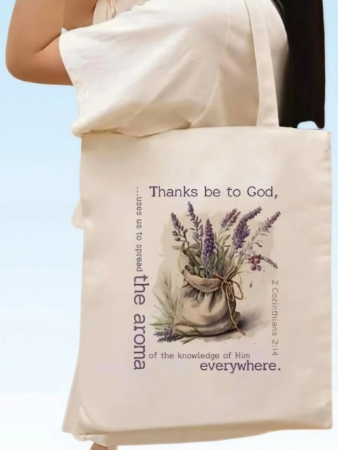 Carry your faith with you wherever you go with this beautifully designed canvas bag. Featuring the uplifting scripture verse from 2 Corinthians 2:14: “Thanks be to God, …uses us to spread the aroma of the knowledge of Him everywhere.” This verse is a powerful reminder that as believers, our lives are meant to radiate Christ’s fragrance to the world.